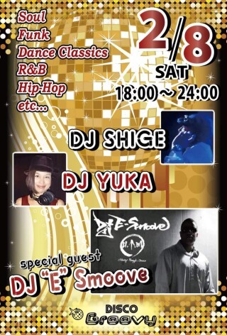 毎月第2土曜日は【DJ SHIGE&DJ YUKA】による黒音オンリーの夜にNew York出身のDJ E.Smooveをゲストに迎えさらに黒くお届けします。