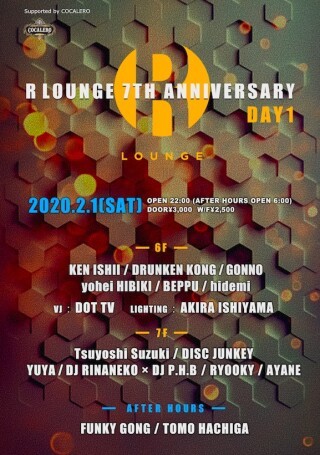 2月の毎週土曜日に開催されるR LOUNGE 7TH ANNIVERSARY 初日となるDAY1には、東洋のテクノゴッド KEN ISHIIをはじめ、DRUNKEN KONG、GONNO、Tsuyoshi Suzuki、DISC JUNKYら世界中で活躍するアーティスト達が登場