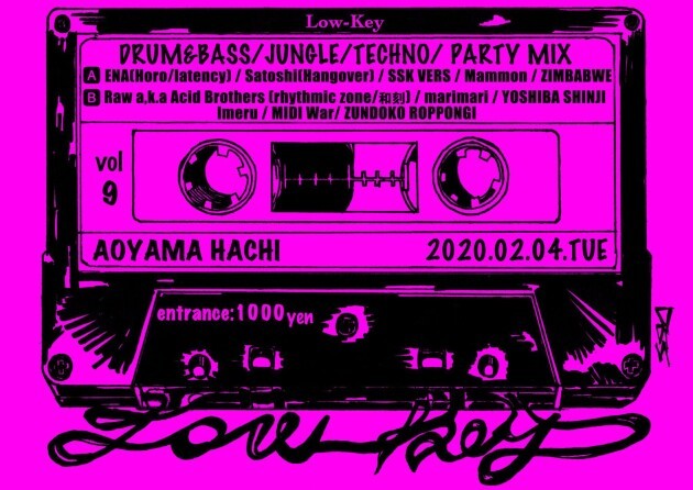 東京の地下を支える実力派DJをDrum&BassとJungleとTechnoの元に集約し 夜のネオンの輝きと美味しいお酒と、最高の音楽に触れて踊れるPARTY 【 Low-key】 翌日に響かない程度にセーブする嗜みも、乱痴気騒ぎも大歓迎!!