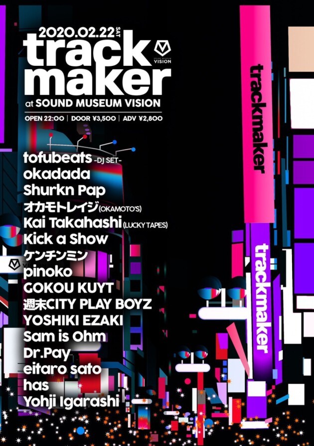 第一弾ラインナップ発表!!! 毎回1000人を超える動員を誇るVISIONのビッグパーティー、 trackmakerが2020年 1発目の開催!!!