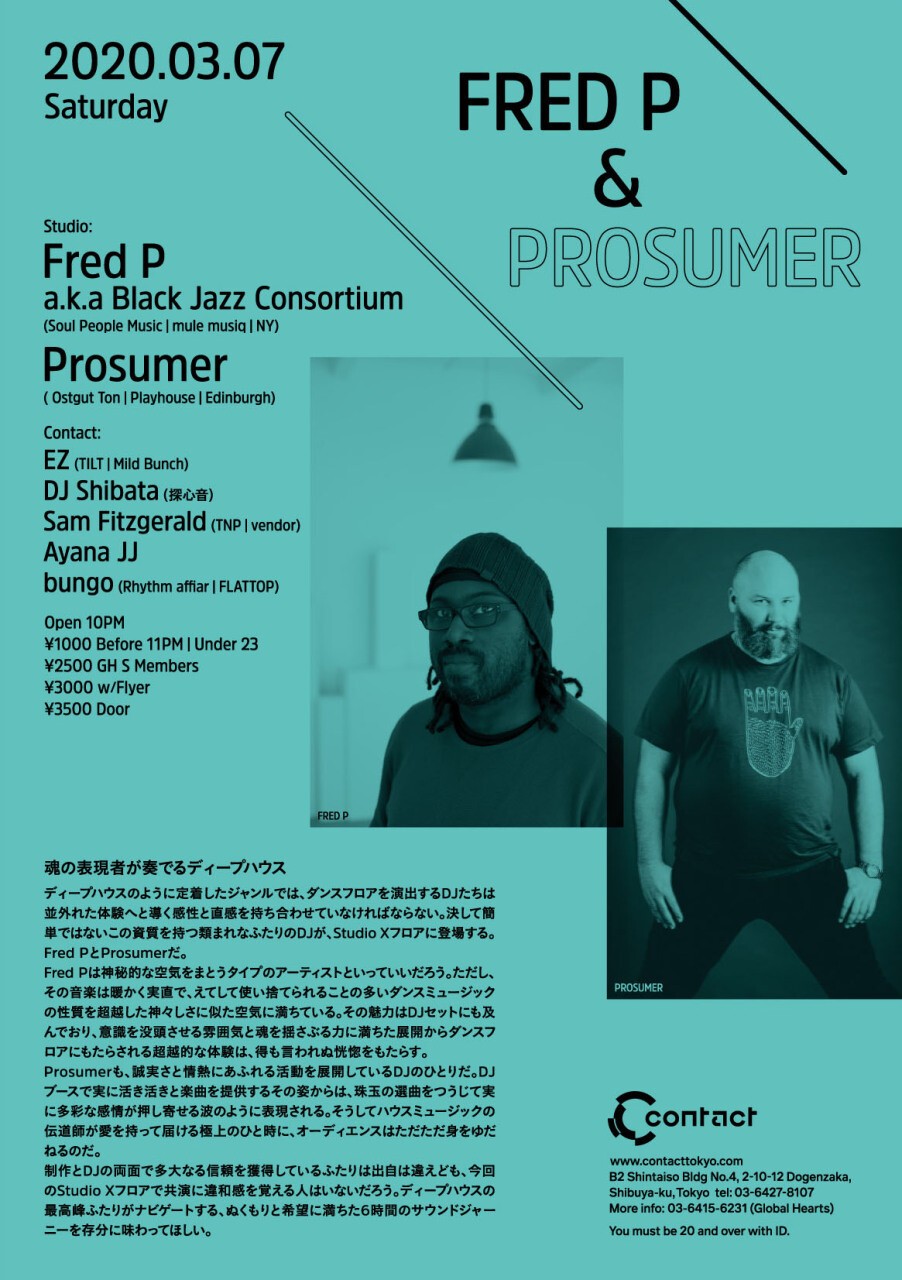 ディープハウスのように定着したジャンルでは、ダンスフロアを演出するDJたちは並外れた体験へと導く感性と直感を持ち合わせていなければならない。決して簡単ではないこの資質を持つ類まれなふたりのDJが、Studio Xフロアに登場する。Fred PとProsumerだ。
