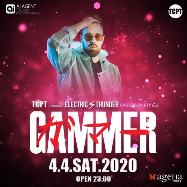 4月4日(土)に予定しておりました「ELECTRIC THUNDER feat.GAMMER」は、 新型コロナウィルスの影響により、日本政府から出されたイギリスからの入国制限のため、イギリス在住のGAMMERの来日が不可となりましたので、やむを得ず延期させていただくこととなりました。