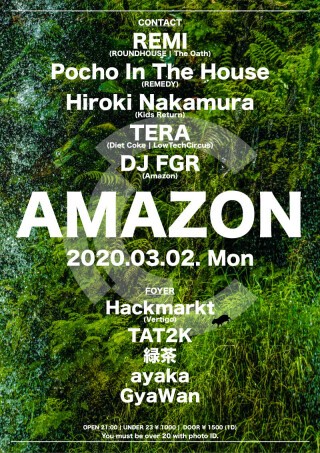 気鋭DJたちがテクノ・ハウスに軸を置きつつもジャンルにこだわらず新旧のミュージックジャングルを開拓するパーティ ”AMAZON”。