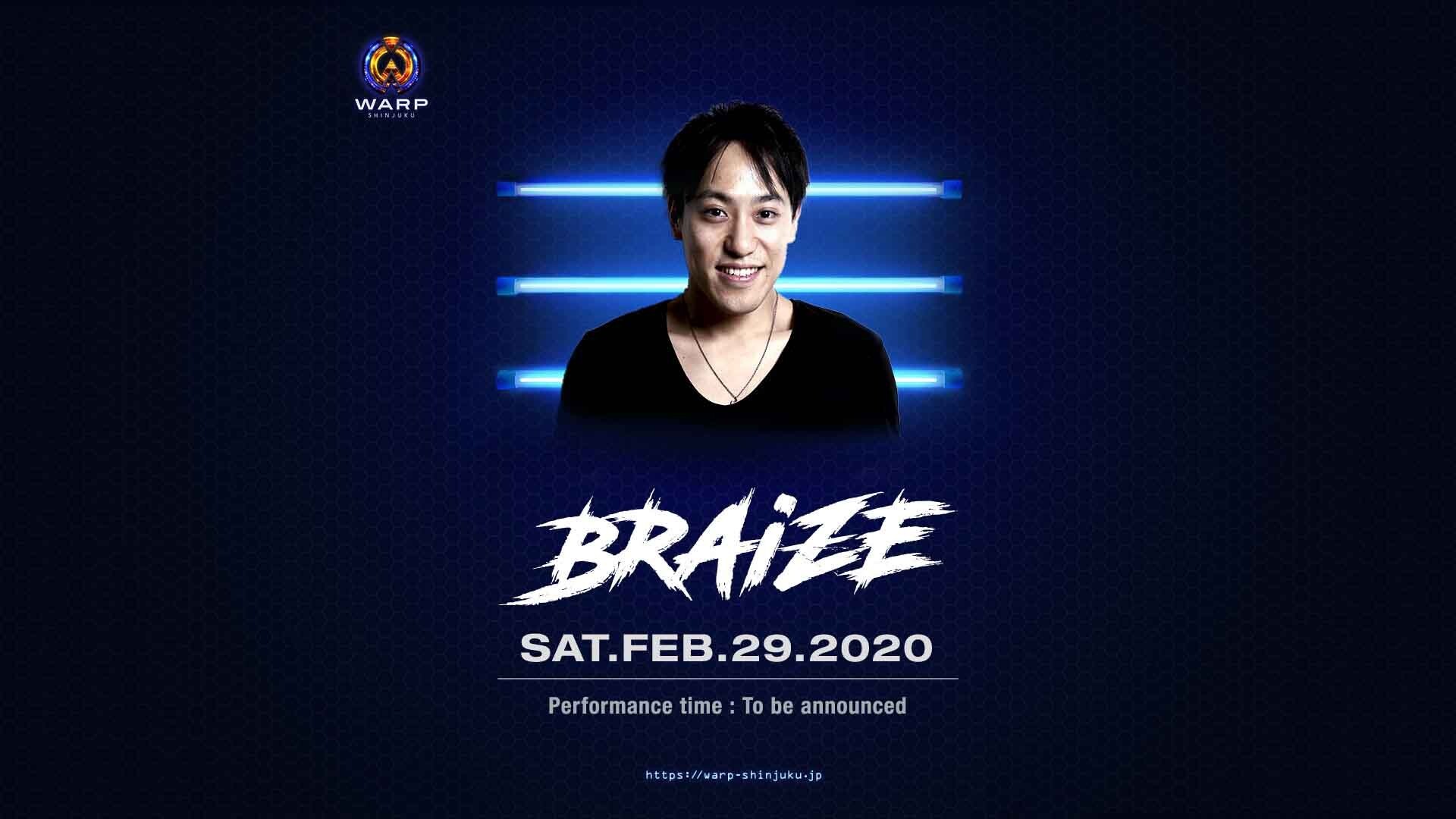 首都圏のクラブを中心に活躍するMC RickyがWARPに登場。 映画、ミュージックビデオ、コマーシャル、雑誌にビデオゲームのボイスワークなど多岐に渡り活躍の幅を広げているMC Ricky。経験に裏打ちされた抜群のキレとタイミングで週末のWARPを大いに盛り上げてくれることに違いない。 MC Ricky Facebook : https://www.facebook.com/prettyrickyjpn Twitter : https://twitter.com/pretty_rickyjpn Instagram : https://www.instagram.com/prettyrickyjpn/ 首都圏のクラブにおいて絶大な信頼を誇る実力者「DJ BRAIZE」がWARPに登場。 東京生まれ東京育ち、20年近くのDJ・プロデューサーとしてキャリアを重ねる「DJ BRAIZE」がWARPに登場。2016年から西麻布AlifeのResident DJも務め、渋谷Atom、Camelot、TK、銀座のPlus Tokyoと、東京の主要ナイトクラブほとんど全てでレギュラーを持つ稀有なDJである彼。圧倒的な経験値と現場力から放たれるDJプレイ、ぜひとも刮目していただきたい。 DJ BRAIZE Twitter : https://twitter.com/djbraizejp