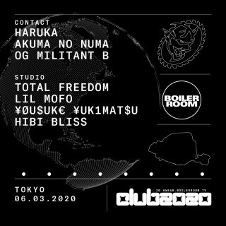 今回のBoiler Roomクラブウェアデザインを手がけたLil’ Mofoを筆頭に、アメリカからTOTAL FREEDOM、国内からは悪魔の沼、¥ØU$UK€ ¥UK1MAT$U、Hibi Bliss、OG Militant Bに加え、スペシャルゲストとしてFuture TerrorのHarukaの出演も決定!