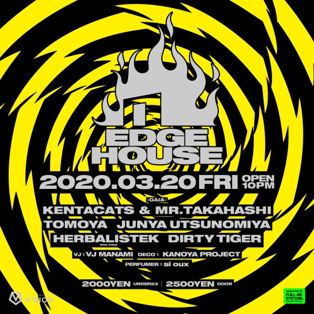 「EDGE HOUSE」は、装飾、映像、香りの演出の中で現在進行形のHouse/Tech Houseを軸にした良質なダンスミュージックを楽しめる非日常空間です。東京だけでなく各都市や海外への進出も進行中です。ホームである渋谷VISIONで開催される「EDGE HOUSE」にぜひお越しください!