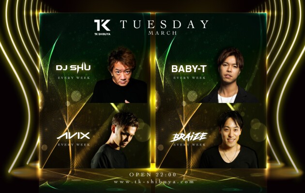 TK SHIBUYA WEEKDAY EVENT ラインナップ、店内装飾、最先端の音響照明設備を完備するTK SHIBUYAへ是非、お越しください!