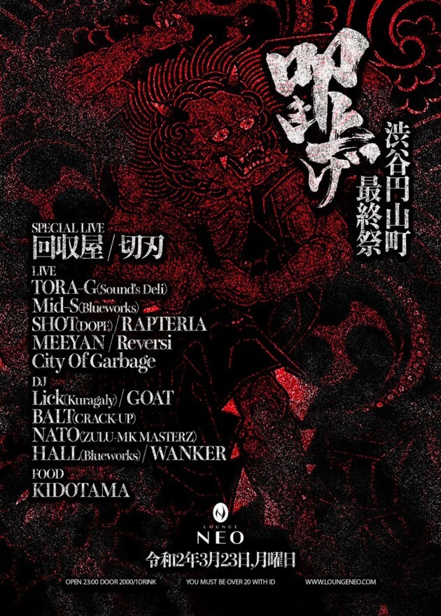 『ヤンチャナイト』 DJ’s, MOTOHIRO, ZIN, KAZ, A2O, SHINGO, CHI-BOU, Pちゃん, 武道, MOTOKI, MC’s, i@ra, Kt,