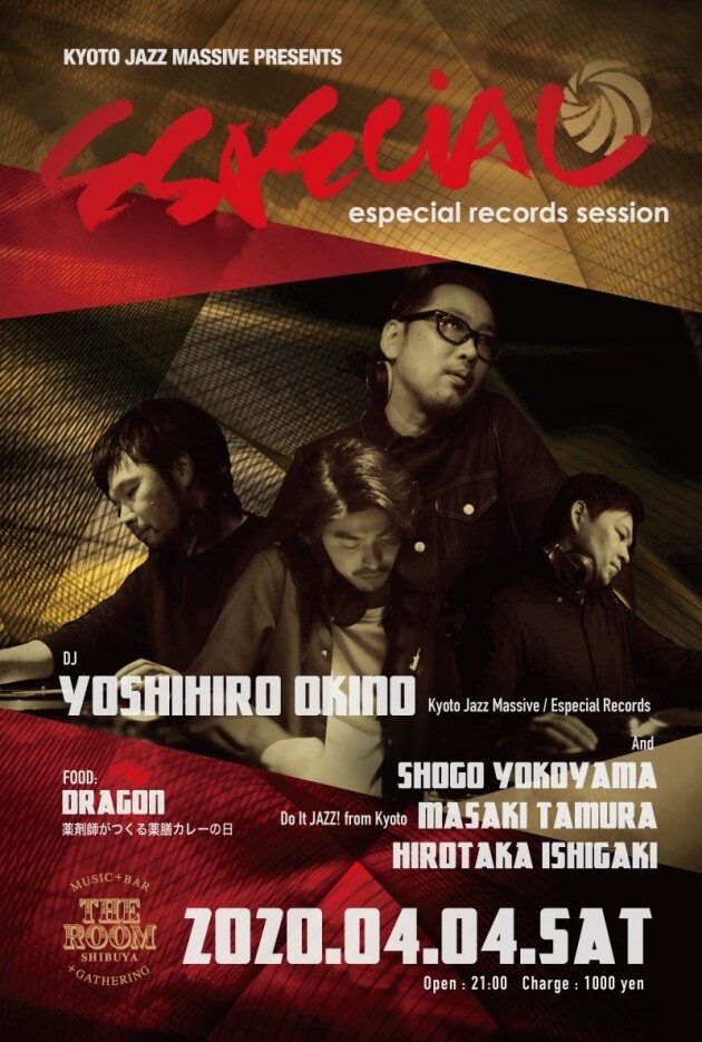 2020年4月のEspecial Records Sessionは、レジデントDJのYOSHIHIRO OKINO、準レギュラーのSHOGO YOKOYAMAに加え、京都からMASAKI TAMURA (Do It JAZZ!)、そしてOpeningのHIROTAKA ISHIGAKIのDJでお贈りします。