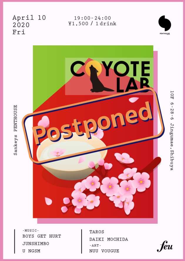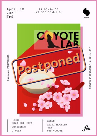 4月10日に予定していたCoyote Lab #6は新型コロナウィルスの影響により感染拡大防止、及び出演者やスタッフの健康を考慮し、延期させていただくこととなりました。振替日程は5月16日になります。イベントを楽しみにしてくださっていた皆様に心からお詫び申し上げます。また5月16日にお会いしましょう!