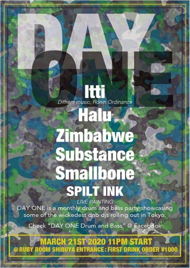 Day One returns to Ruby Room, Shibuya in March. This time welcoming the jungle queen HALU and jungle don ZIMBABWE