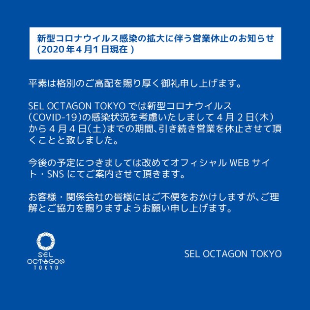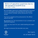 SEL OCTAGON TOKYO will suspend operations from April 2 to 4 in accordance