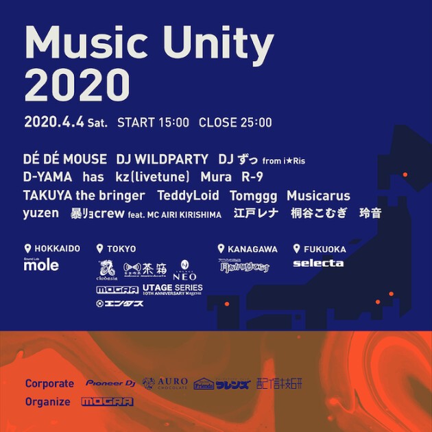 「Music Unity 2020」は日本全国のクラブ、ライブハウスなどのミュージックヴェニュー協力のもと配信されるノンストップ形式のライブストリーミングフェスです。