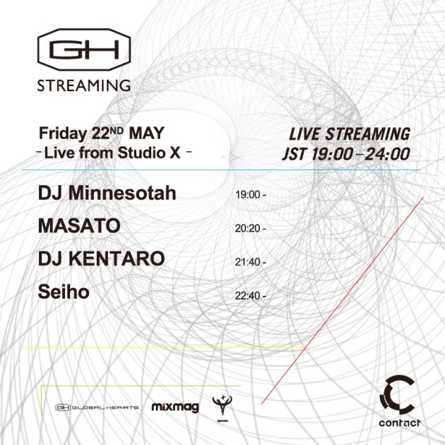 今回のGH STREAMINGには、世界最大のDJバトル「DMC World Final 2002」においていまだやぶられることのない大会史上最高得点というギネス記録に名を残す、文字通りの圧勝でアジアから初の世界チャンピオンに輝き、世界中で活躍するDJ Kentaroを迎える。そして、ビート・メイカー、プロデューサーとしても様々なアーテイストへ楽曲提供を行っている他、自身の海外ツアー、リリースも好評なSeihoに加え、contactでも毎月第2火曜日に開催されているレギュラーイベントmariより、ヒップホップクルーKANDYTOWNのDJ、MASATOとDJ Minnesotahの2人が登場。