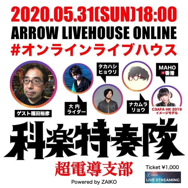 副店長大内ライダーの数ある顔の一つ、それが特撮オタクであり特撮カバーバンド「科楽特奏隊」のメンバーであること。自粛期間で気軽に仲間とオタクトークもできない、イベントも打てない、ならばオンラインでやればいい!?科楽特奏隊のタカハシヒョウリ、ナカムラリョウと共に、2020年以降の特撮シーンはどうなるのか?自粛期間のオタクの過ごし方とは?度を超えたオタクミュージシャン3人が、アクセスフラッシュして現れます。