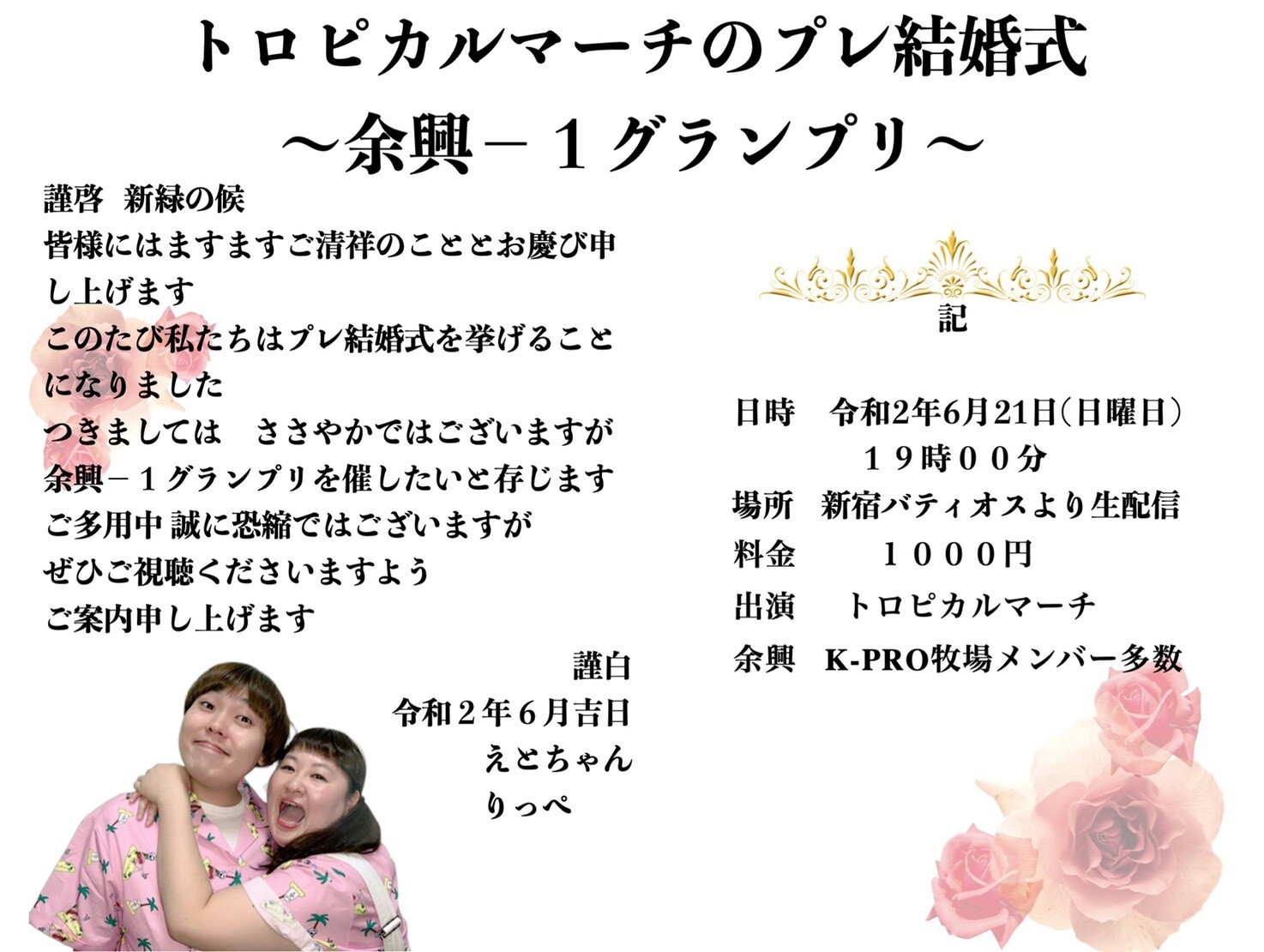 つきましては、ささやかではございますが余興ー1グランプリを模様したいと存じます