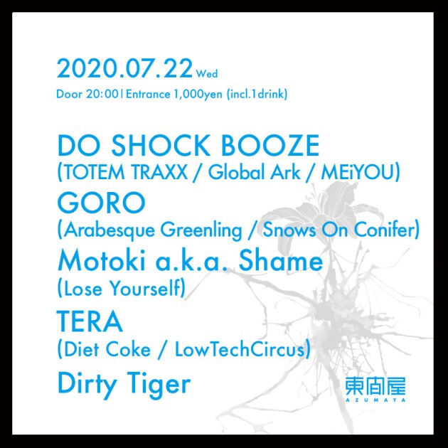 DO SHOCK BOOZE (TOTEM TRAXX / Global Ark / MEiYOU) GORO (Arabesque Greenling / Snows On Conifer) Motoki a.k.a. Shame (Lose Yourself) TERA (Diet Coke / LowTechCircus) Dirty Tiger