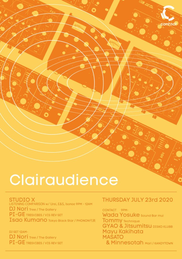 試聴会の後にはDJ Nori、PI-GEに機材を使ってプレイしてもらう。そしてContactフロアには久々の登場となる千葉のWada Yosuke、レコードショップTechniqueのスタッフでもあるTommy、Disko KlubbからGyaoとJitsumitsuの2人、ミュージックセレクターMayu Kakihataを迎える。