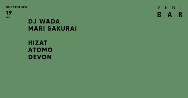 9月19日のVENT BARにはDJ WADA、Mari Sakurai、HIZAT、ATOMO、Devonが登場