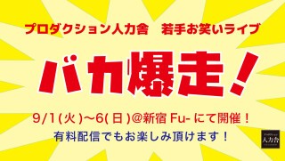 プロダクション人力舎の若手芸人による定期ライブ「バカ爆走!」9月公演が劇場にて開催決定!