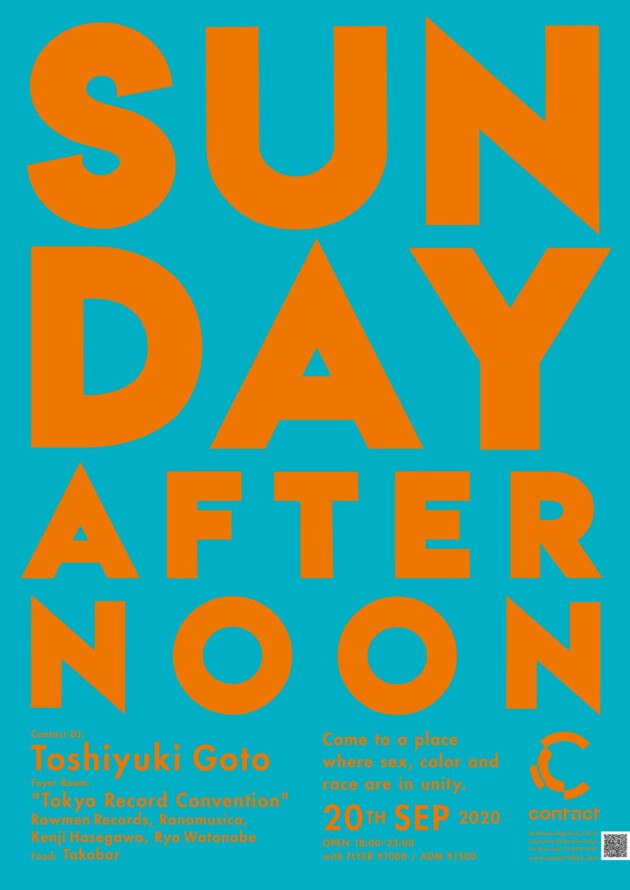 東京で日曜日の夕方から始まるパーティの先駆けともいえるSUNDAY AFTERNOON。ニューヨーク仕込みのToshiyuki Gotoが、人と人とのエネルギーを大切にし、人種や性別を超え、ハウスミュージックを中心に20年間続けているこのパーティで、ジャンルに囚われることなくファンキーでエモーショナルな5時間エクスクルーシブセットを披露する。