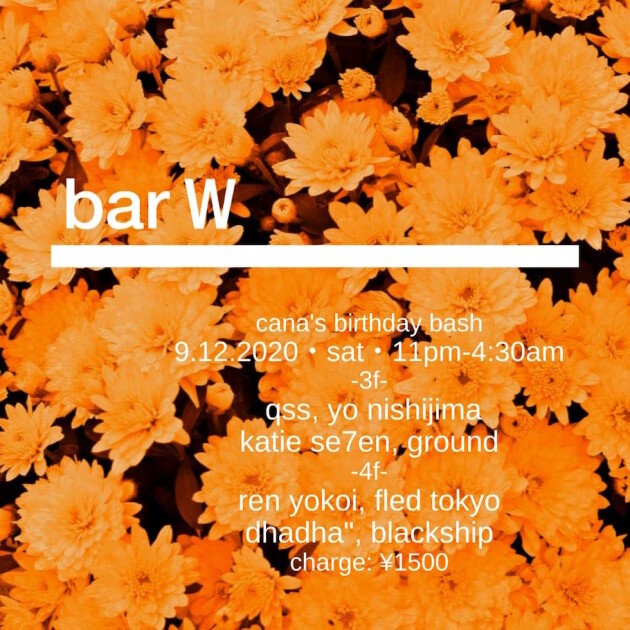 9/4(FRI) の bar W は、エクスクルーシブなラインナップで開催される。海外で、評価されている DRUNKEN KONG を筆頭に、SESSION のレジデント TOMMY WADA 、WOMB には久しぶりの登場となる Mareamなどが出演する。