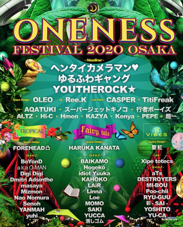 DMT Entertainment 『 ONENESS Festival 』 2020 Osaka 会場 南港三角公園 大阪市住之江区南港東9 2020年 9月13日 日曜日 開演 9:00 終演 18:00