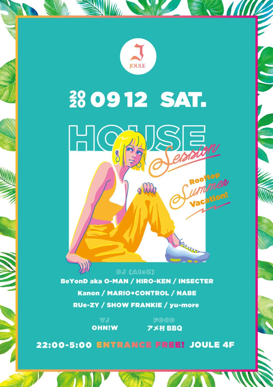 『HOUSE SESSION』のRooftop Summer Vacationと題し、開放的なテラスでかき氷、輪投げ、アメBBQのバジルチキンもお楽しみいただけます!