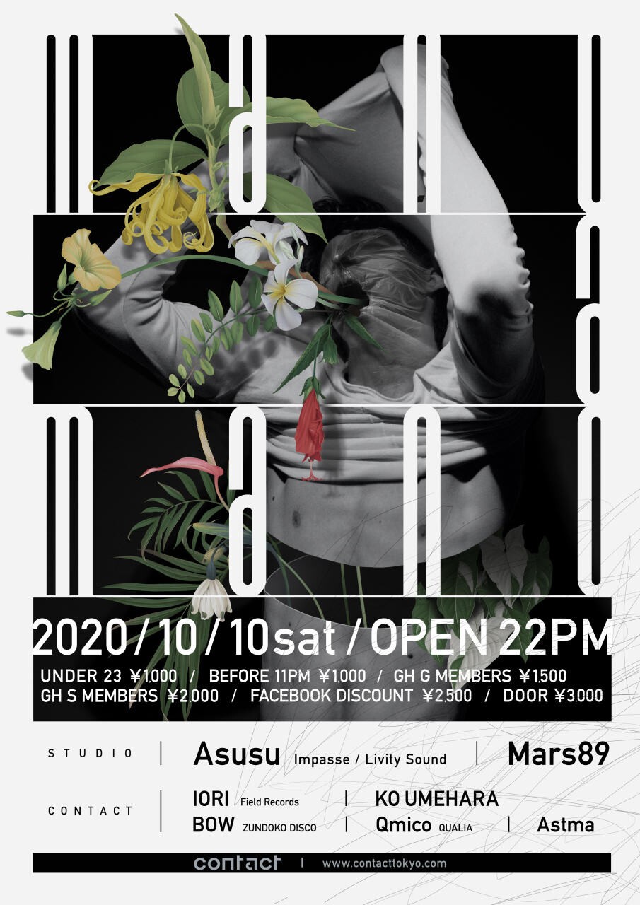 Contact floor will consist of a solid lineup entrusted by Techno freaks and enthusiasts. With the vast musical information circulating the air, IORI brings them all together in the form of Techno to heighten experience. Pure energy by Ko Umehara who constructs his sets with precision, the dazzling BOW from ZUNDOKO DISCO, the thorough guidance of every detailed changes made by Qmico, and Astma, the organizer of ヒャクニサンジュウ, will be providing all the Techno freaks with their desires.