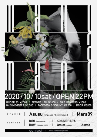 一方、Contactフロアではテクノフリークが信頼を置く重厚なラインナップが迎える。膨大な音楽情報をテクノというジャンル一点に集中させることで高密度なサウンドを描くIORI、エネルギーの拡大を緻密な構築へと変換するKo Umehara、ZUNDOKO DISCOのBOWによる幻惑の時間、Qmicoがみせる徹底した微細な世界への誘導、そしてヒャクニサンジュウを主催する新鋭Astmaといったラインナップはこの夜を燃焼させようと試みるテクノフリークの欲望に十分応えうるものだ。