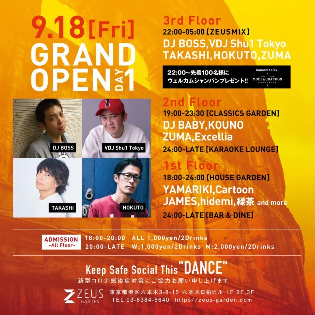 六本木交差点より1分の立地に、バー、ラウンジ、劇場型フロアを併設した、全3フロア・総面積350坪に及ぶ巨大空間「ZEUS GARDEN(ゼウス・ガーデン)」がグランドオープン!