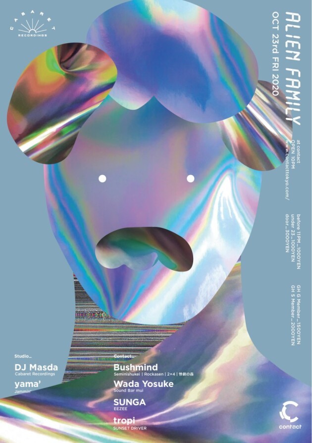 The name dj masda, along with his label〈Cabaret Recordings〉, has gained worldwide trust and recognition playing at prestigious nightclubs such as Panorama Bar, Fabric, Robert Johnson, Closer, Phonotheque, and playing somewhere every weekend in one of the 5 continents of the world. His sets take on a modern approach with sounds ranging from Techno as early as from the 80’s, House, Electro, Breakbeats, and masterfully structures emotionally complex progressions through the art of DJing. His imagination and originality takes you far away from reality and into a dream-like state by bringing out the best in dance music. ALIEN FAMILY is the embodiment of dj masda’s ideal party, which has earned a solid reputation on a global scale. Supporting in the main room is yama’, who has played for the party held in May last year in Berlin and in November at Contact, promising quality essential for AIEN FAMILY.