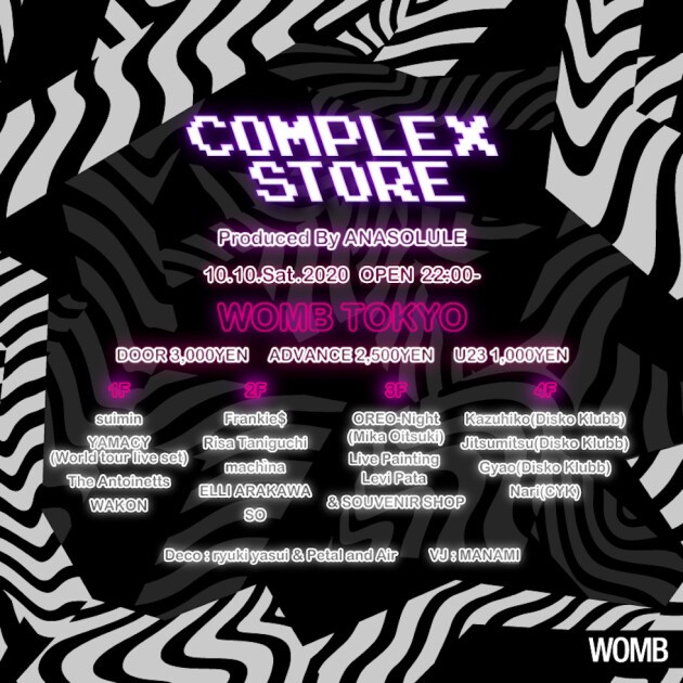 そんなユニークな COMPLEXSTORE が、WOMB にて豪華ラインナップとお茶目な仕掛けと共にお披露目パーティーを開催する。