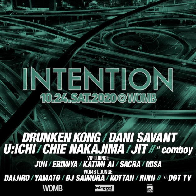 これまでにINTENTIONには、Christian Smith、Uto Karem、Kaiserdisco、Wehhba など、Techno TOP アーティストが来日、更に各フロアーには常に活躍している DJ が大集結し、毎回熱気を感じるパーティーが行われている。