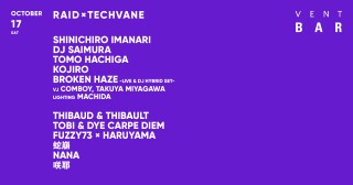 10月17日のVENT BARは、DJ SAIMURAとBROKEN HAZE率いるRAID × TECHVANEが開催!!