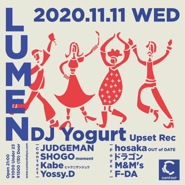 Providing colorful and borderless music, carefully thought out party planning that has headlined the likes of Andy Vaz from Germany, KAITO a.k.a. HIROSHI WATANABE, ORESKABAND’s sax player ADD and chucky’s live set, LUMEN hosts a night using 2 floors to feed the need for the hungry music lovers. DJ YOGURT returns to LUMEN for the first time in a year, a perfect fit for the party’s color. JUDGEMAN, a DJ/Organizer with countless big parties under his name, City Pop/Indie Rock party “moment” organizer SHOGO, Kabe the organizer of ヒャクニサンジュウ (Hyaku Nisanjyu) at 神楽音 (Kagurane), and hosaka who produces OUT OF DATE at Shibuya OTO with skmt and okdtsk. along with other experts of various genres will be joining the lineup. And, last but not least, Yossy.D with his vast musical knowledge and solid selections will be guiding you through the evening.