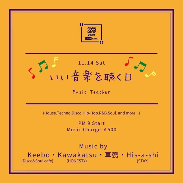 MUSIC by Keebo (Disco&Soul cafe) / Kawakatsu (HONESTY) / 草彅 / His-a-shi (STAY)