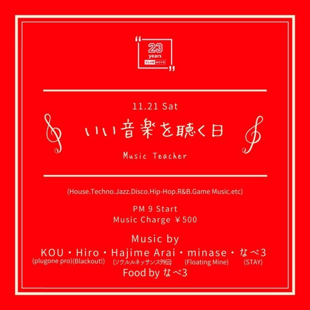 この日はMOVE界隈の様々なDJ達が週末BAR営業のBGMを担当します。