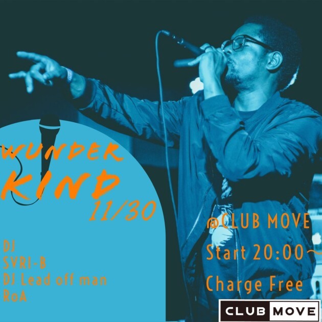 今回のみCLUBMOVE第5月曜日 "Wunder Kind" 若い世代のDJがHIP-HOPを中心にBLACK MUSICをお届けします。