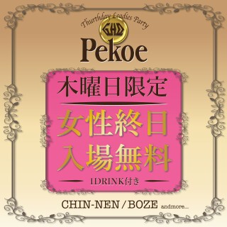 毎週木曜日は"Pekoe"終日女性入場無料!!