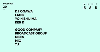 【 11月20日のVENT BARにDJ OGAWA、LAMB、YO NISHIJIMA、KEN Kが登場 】