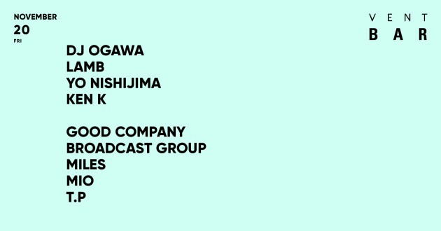 11月20日のVENT BARにDJ OGAWA 、LAMB、YO NISHIJIMA、KEN Kが登場