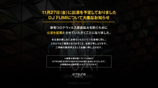 11/27(金)に出演を予定しておりましたDJ FUMIについて大事なお知らせ