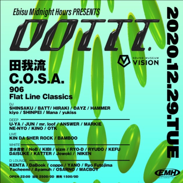 8月からスタートし毎回大盛況のパーティー「Dottt.」、今回は年末スペシャルということでスペシャルゲストに田我流、C.O.S.A.を迎えての開催!