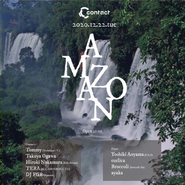2020年最後の開催となる今回、Contactフロアには、日本屈指のレコードショップTechniqueより底知れぬ知識に裏打ちされた選曲と確かなスキルで定評のあるベテランDJ、Tommy、またミニマルハウスを軸としたDJとして活躍するTakuya Ogawaの2名を迎え、レジデントでありレーベルKids Returnを主催するHiroki Nakamura、Amazon主催のTera、DJ FGRの5名がプレイ。
