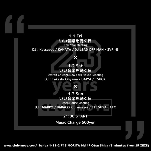 DJ : Takashi Ohyama(HONESTY) / DAIYA(TRAXX) / TSUCK(MKC)