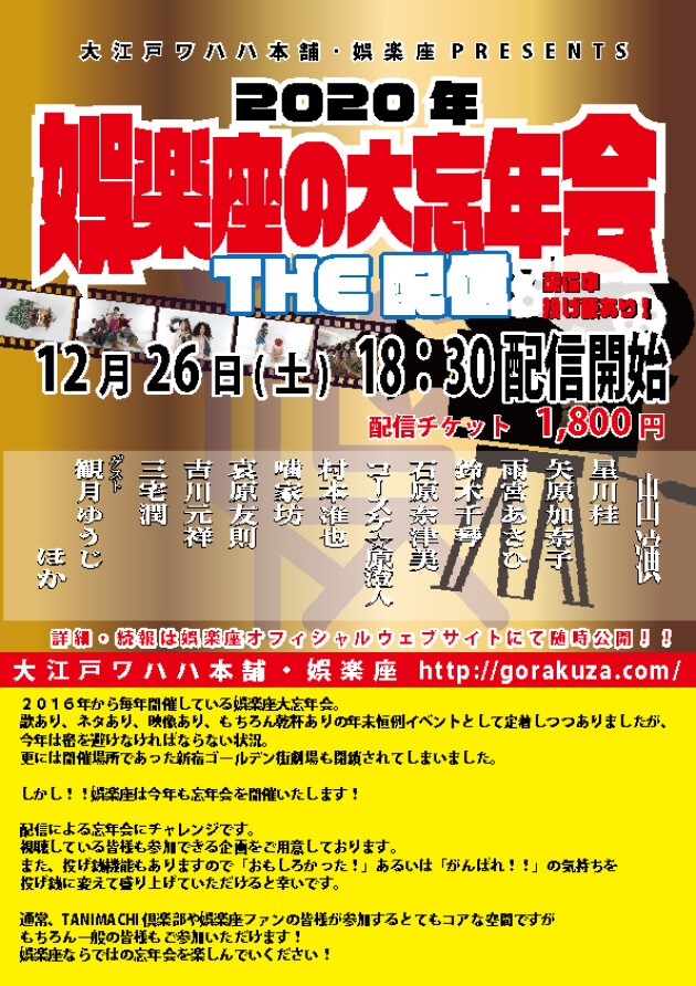 2016年から毎年開催している娯楽座大忘年会。