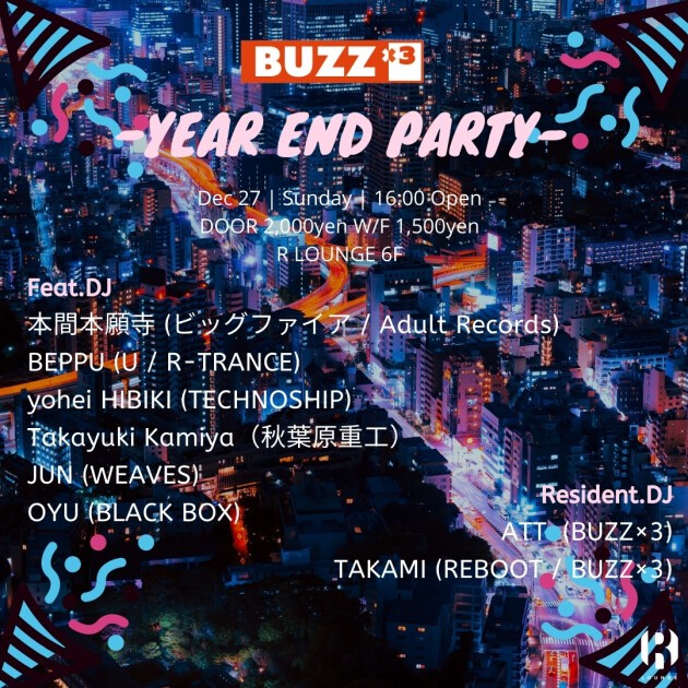 激動の2020を締め括るイヤーエンドスペシャルとして、BUZZx3に所縁あるタフネスでテクニカルなDJ陣を迎えたアフタヌーンバージョンとして開催。