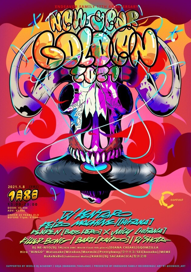 『SUNNY GOLDEN』has become an annual Year End Party at Contact. This time, we present you with『NEW YEAR GOLDEN』on January 8th, Friday.
