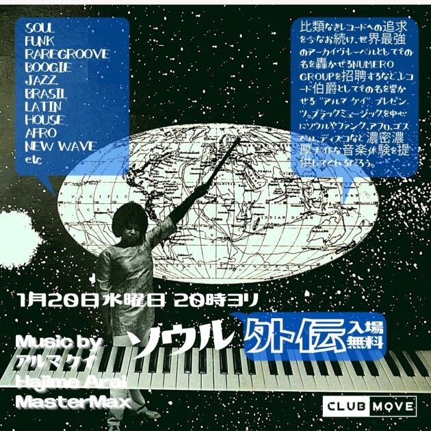 比類なきレコードへの追求を今なお続け、世界最強のアーカイヴ・レーベルとしてその名を轟かせるNUMERO GROUPを招聘するなど、レコード伯爵として一部の間でしられるレコード伯爵こと、 "アルマ ケイ" プレゼンツ。ブラックミュージックを中心にソウルやファンク、アフロ、ゴスペル、ディスコなど濃密濃厚ナイトな音楽体験を提供してくれるだろう。